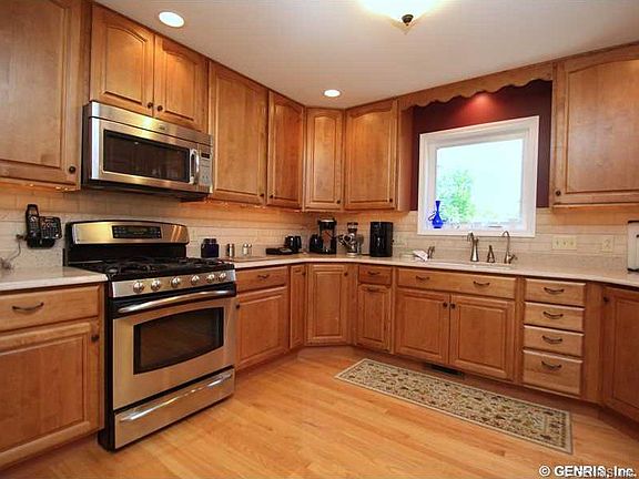 Stunning, custom-quality 2007 built home loaded with upgrades on private, idyllic 5 acres overlooking stream with accent lighted waterfall! Luxury 1st floor Master Suite & Bath with Jacuzzi tub & walk-in shower. 1st flr laundry. Gourmet kitchen w/solid surface counters, breakfast bar, stainless appliances. Great Rm w/vaulted ceiling. Hardwood flrs. Media Room. Screened & covered porches, Trex floor. Finished multi-use walkout lower level. Workshop. Hardie Board siding. Whole house generator. 7 zones gas HVAC system, A/C. Water system. Audio system. Paved driveway. Canandaigua Lake steps away!