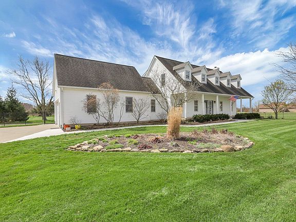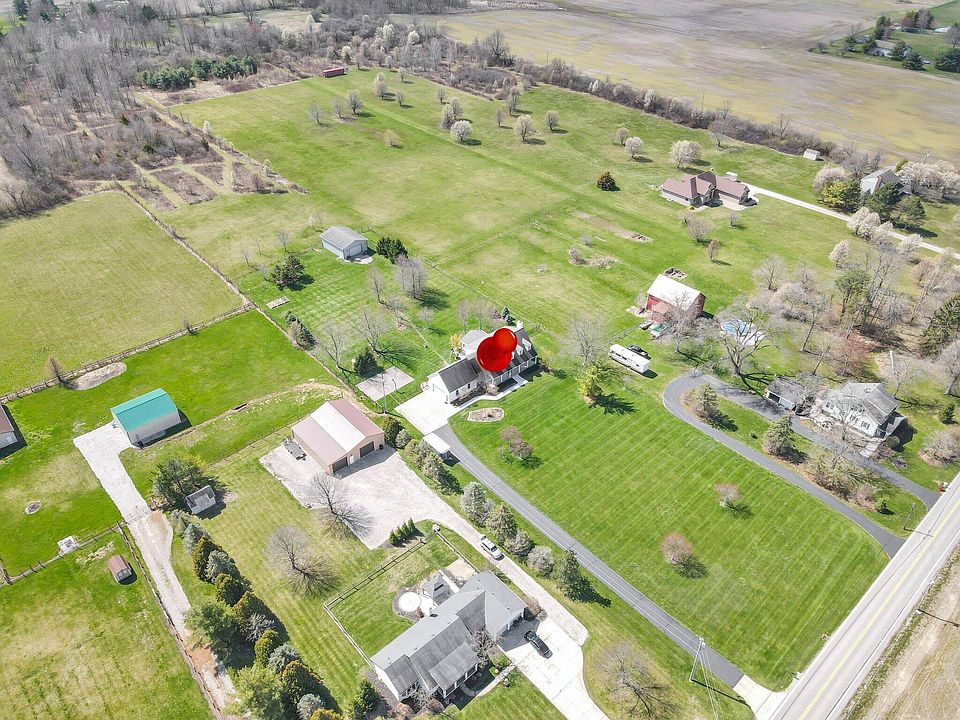 Stunning custom built home, over 5 acres, pole barn with electric and water, basketball court, fully fenced yard! Office at entry level, great room with fireplace, custom designed gorgeous new chefs dream kitchen. mud room, large private laundry room. Finished lower level with kitchenette and exit door, pool table will remain. Upper level featuring owners retreat and luxurious updated spa like bath. Generous bedrooms all with closet system organizers. Close to Towne Center fantastic location.