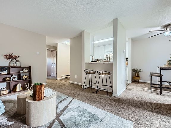 Cozy top floor condo perfect for a first time homebuyer or investor. The kitchen offers white Shaker cabinetry, durable vinyl plank flooring. Enjoy the oversized bedroom with plenty of space to relax or work from home. Step outside to a peaceful patio—ideal for morning coffee or unwinding in the evening—with extra storage! Convenient yet peaceful location...just blocks from Twin Lakes Golf & Country Club and Dash Point Park. Close to shopping, restaurants, schools, bus lines and transit station. No rental cap!