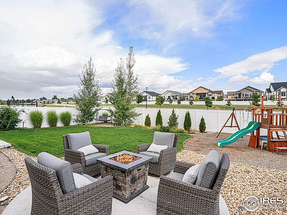 Welcome to The Ridge at Harmony Road, where modern design meets Colorado living. This stunning two-story home, built in 2020, features an inviting entry with soaring windows and abundant natural light. A separate dining room sets the stage for gatherings, while the chef's kitchen offers stainless steel appliances, crown-molded cabinetry, a spacious island, recessed lighting, and hardwood floors that flow seamlessly into the dining area.The great room boasts a lighted ceiling fan and an open feel, while the large master suite impresses with its oversized walk-in closet and spa-inspired bath. Ceramic tile accents in the bathrooms and laundry, plus an upstairs laundry room, add both style and convenience.One of the standout features of this home is the massive 4-car tandem garage-over 800 sq. ft. of space-perfect for vehicles, storage, or hobbies. Outdoors, you'll enjoy a beautifully landscaped, fenced backyard with a cozy fire pit area-ideal for relaxing or entertaining under the Colorado evening sky.With its thoughtful layout, upgraded finishes, and unbeatable garage and backyard, this property is ready to welcome you home.