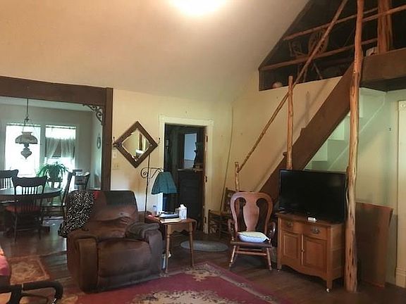 Very secluded little 3 bedroom 1 bath house nestled back behind trees with a 20 x 24 shop. House has a loft that can be used for kids play area. Has red wood flooring in living room, window units and wood burning stove for heat. The shop has 220 electric in it and the well is 445 ft deep. Also has a chicken house and tree house. Kids will love the tree house built in the woods.