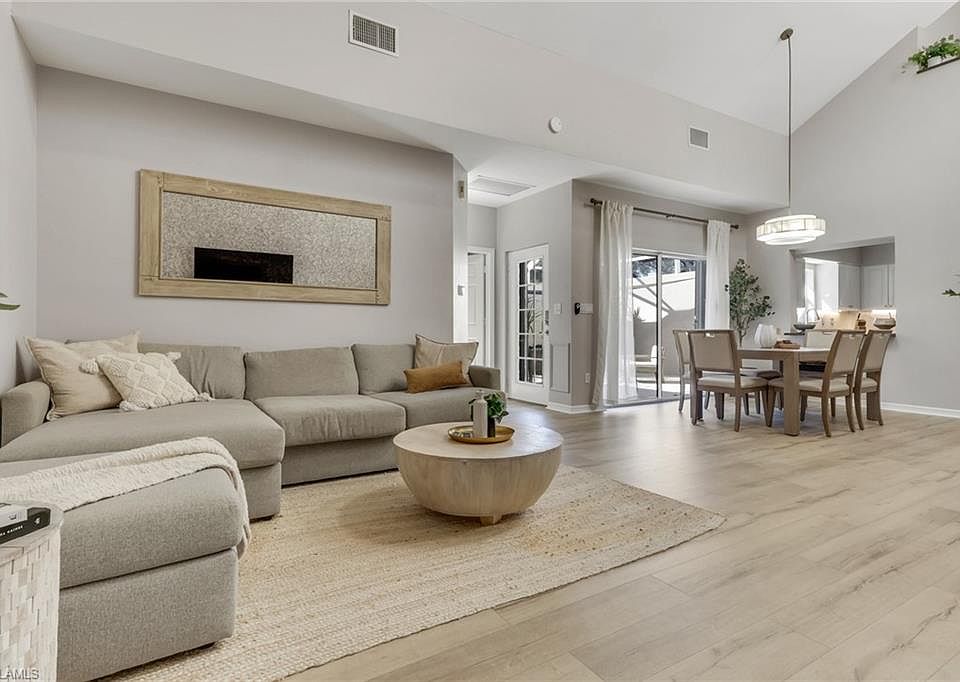Step into this beautifully updated two-story residence in Quail Woods Courtyards, where soaring ceilings, abundant natural light, and modern finishes create an inviting sense of space from the moment you walk in. The living room feels grand and uplifting with its high ceilings and bright, open ambiance, complemented by stylish flooring that enhances the home’s contemporary appeal. The layout features a spacious loft perfect for an office, media space, or additional lounge area, while the well-appointed bedrooms offer comfort and privacy. A huge screened lanai expands your living space outdoors, providing a peaceful retreat ideal for relaxing or entertaining. Set within the charming community of Quail Woods Courtyards in North Naples, residents enjoy a low-maintenance lifestyle with a beautifully maintained environment, a serene lake with a fountain, and access to a sparkling community pool and tennis courts. Ideally located just minutes from shopping, dining, top-rated schools, and Naples’ world-famous beaches, this home blends style, convenience, and the relaxed Florida lifestyle all in one.