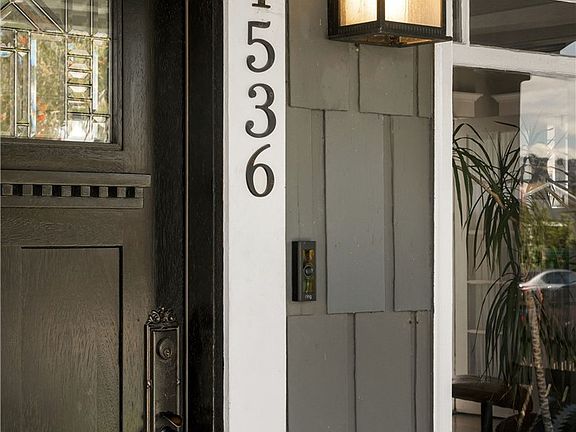Rich in detail, this Swiss Chalet Craftsman is an absolute dream. From charm and character to fully updated systems, you'll immediately feel at home. Relax on the covered porch or take a load off and rock gently on the swing. The stately front door ushers you into a large, bright living room framed by timeless, period picture windows that offer glimpses into this thoughtfully curated home. Tucked behind classic pocket-doors lies a cozy sitting room lined with character built-ins and an inviting brick fireplace. Original wood floors exude warmth and familiarity. A formal dining room features French doors that open into an enchanting sun room perfect for houseplants or a simple dose of Vitamin D.