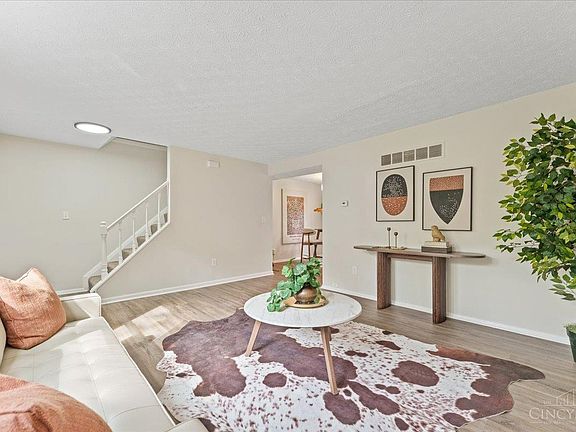 Enjoy a peaceful setting with this refreshed home in a tree-lined community. Fully renovated inside and out, this home features a brand-new roof, windows, furnace, air conditioning system, and water heater - all completed in 2025. Step inside to find stylish updates throughout, including fresh paint, new flooring, and modern fixtures. The kitchen shines with sleek white cabinetry, stainless steel appliances, and a walkout to a private deck overlooking the woods. The lower level offers potential to finish for additional living space, while a charming courtyard entry and assigned parking add everyday ease. Conveniently located near everything Eastgate has to offer, including shopping, dining, and easy highway access. Low monthly HOA which includes a pool, pond, and walking trails.