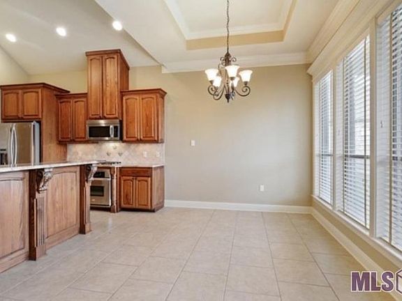 Beautiful, elegant, 3 BR 2 BA custom built, split floor plan home that has it all. The buyer is welcomed by a solid wood front door. Ceiling height 10-12 ft throughout home. Kitchen/dining area combo with kitchen featuring stainless steel appliances including gas stove, range oven, 4 cm upgraded, slab granite countertops, decorative travertine backsplash, eat-in bar, cathedral ceiling, cypress cabinets, pantry and recessed lighting. Refrigerator, washer and dryer to remain. Formal dining room has double tray ceiling. Quadruple crown molding and ceiling fans throughout home. Living room has gas, vent less, fireplace that is framed with cypress carved wood to the ceiling and granite. Flooring--pine wood, carpet and ceramic tile. Master bedroom features double tray ceiling framed with crown molding. Master bath features double vanities, large walk-in closet, jetted garden tub, separate shower and water closet. Computer nook has cypress countertop and cabinets. Beautiful light fixtures and paint colors. Security system for ultimate peace of mind. Exterior of home has installed gutters and lovely landscaping. Open and covered patio. 2 car attached garage. Conveniently located along chemical industry corridor for stress free and short drive time commute, area retail, commercial and restaurants. Brusly school district. Call for your showing.