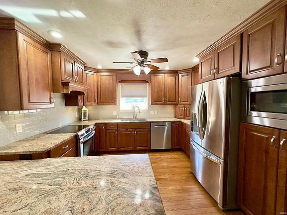 Need space both indoors AND outdoors? Located between Jasper & Ireland you'll certainly find it in this 2,900+ sq. ft., one story home situated on almost 1 1/2 acres. Indoors you'll enjoy 4 bedrooms, 3 full bathrooms & one half bath. From the front door, the floor to ceiling stone fireplace will invite you to stay for a while. The kitchen is designed with custom Shamrock Cabinetry, granite countertops and the richness of the Knies Sawmill flooring throughout the kitchen, dining and living rooms will make you feel warm and cozy. Just off the kitchen with access to an outside entrance is a half bath and laundry room. A spacious master ensuite was added and includes a jetted soaking tub, walk-in closet, additional water heater and adjoining office space. This home is uniquely designed for flexibility to have a private bedroom, living room, outdoor access to a patio, and bathroom with handicap accessible amenities. Outdoors it can't get much better than an all brick detached 2 car garage with a covered porch and spacious workshop/hobby area. The concrete parking area provides plenty of space to turn around and the entire back yard is fenced. The amenities are many, the storage is abundant, and there is space that will appeal to everyone!