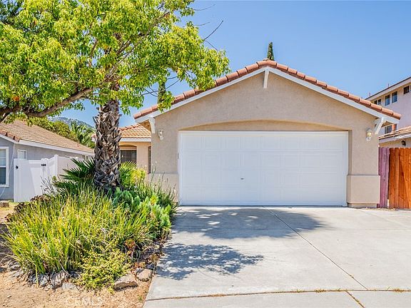 Price Reduction! Welcome to this single-level 3-bedroom, 2 bath, single-story home with 1,201 sq ft and located on a cul-de-sac. You are welcomed with a covered front patio. Upon entry is the living room/dining room combo, both with a Vaulted ceiling and matching Spanish tile flooring. The primary bedroom has a Vaulted ceiling and en-suite bathroom, high window to bring in the the natural light, dual sinks, and a tub/shower combo. Two bedrooms share the secondary bathroom with a tub/shower combo. The kitchen has freshly painted cabinets, new stainless steel appliances. There are 2 sliders to the backyard, one from the kitchen and the other from the Primary Bedroom. The backyard is very private and a menagerie of trees and plants. New furnace, condenser, and water heater are less than a year old. Updates include new interior paint, new exterior paint, new kitchen appliances, and new carpeting in the bedrooms. Low taxes and no HOA keep your payments low.