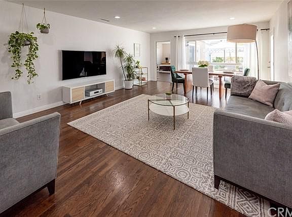 Tucked in a tranquil neighborhood, this 4 bed, 2 bath, 1,606 sqft beauty is destined to be your forever home! Centered at the heart of the home you will find the open living and dining area which brings in an abundance of natural light through the large windows and a bonus door leading out to the private yard. Unwind in the beautiful and spacious primary suite with a contemporary rain shower head and sliding door access onto the patio, perfect for entertaining. Turning to the left upon entering are 3 nice-sized bedrooms with 1 full bathroom highlighting quartz countertops, a rain shower head and beveled subway tile. The wide, eat-in, galley style kitchen is complete with white Shaker style cabinets, quartz countertops, stainless steel appliances, clear beveled subway tile backsplash and tile flooring that flows through the laundry area and out to the gorgeous backyard with a detached 2 car garage and fruit tree. Additional features include a new water heater, A/C, smart garage door opener, freshly painted walls and flooring with fencing in rear yard, new rain gutters and a sprinkler system. All of this while centrally located to all things with close proximity to the Long Beach Exchange, 2.5 miles from the Long Beach Airport, a short 5 minute walk to the Lakewood Tennis Center, the Lakewood Country Golf Club, Bolivar Park featuring a public pool and athletic fields and one block away from the highly rated James Madison Elementary School.