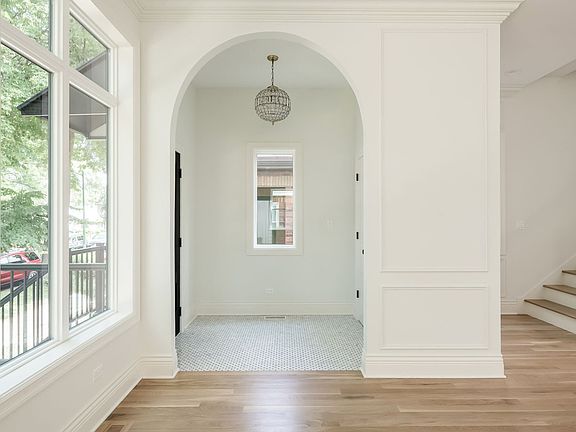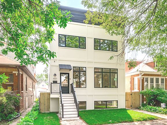 Welcome to 4537 N Karlov, an exquisite new construction single-family home constructed on an extra-wide lot (33x125). This 5 bedroom, 4.5-bath home spans ~4,500 square feet and feels extremely spacious at 26 ft wide. The home also includes a rare ~1,400 sq ft rooftop deck, a thoughtful layout, and elevated, luxury finishes. You'll find designer light fixtures, custom stone, and elegant millwork throughout. The first floor boasts 10' ceilings and a sophisticated foyer leading into the living room, which showcases a 9-foot Italian Carrara marble arched fireplace. Also on the main level is a half bath featuring a custom marble stone vanity and mirror, walk-in storage, a large dining area, and a massive wraparound kitchen with white and oak cabinetry, custom mitered quartz countertops, a stone hood, appliance garage, and premium Bosch appliances, including a 48-inch European double oven. The expansive mudroom features custom oak and green cabinetry offering ample storage. Upstairs, the second floor offers 10' ceilings, 4 bedrooms, and 3 full baths. The spacious primary suite includes an incredible 21' walk-in closet and a spa-inspired bathroom with designer tile, marble counters, a make-up station, heated floors, a shower, and a soaking tub. The laundry room is conveniently located on the second floor and includes a sink and LG washer/dryer tower. Three additional generously sized bedrooms are also located on this level, one of which has a private full bathroom. A stairwell leads up to the doghouse entrance, opening to a ~1,400 sq ft rooftop deck with city views. White oak hardwood floors run throughout the first and second floors. The home is wired for speakers on the first and rooftop levels, along with exterior security camera wiring.The basement level features 9.5' ceiling heights, is fully carpeted, and includes a rough-in for hydronic heated flooring. It also features a recreation room with a wet bar, full-sized Samsung refrigerator, cabinet storage, a fifth bedroom with a private full bathroom, and additional storage in the crawl space area. The yard is fully fenced and includes a 2-car garage with an EV charging hook-up. This stunning home is located near Old Irving Park, close to the Irving Park Blue Line stop, Mayfair Metra, and approximately one mile from LaBagh Woods and Gompers Park.