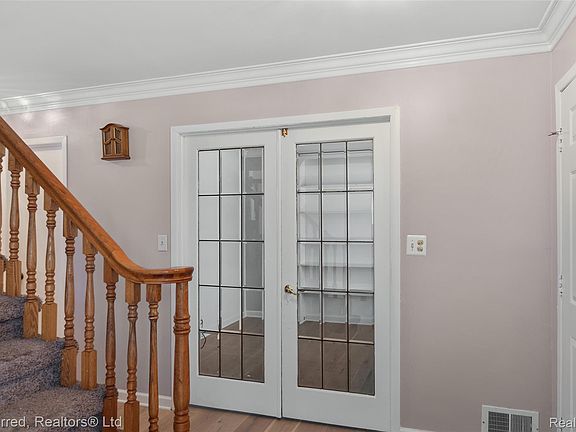Don’t miss this stunning North facing Brick Colonial! Welcome home to this move-in ready 4-bedroom, 2.5-bath brick colonial that’s ready for you to call home! Step through the double front doors into a spacious layout featuring newer engineered wide-plank hardwood flooring throughout the main level. The open concept living and dining rooms boast crown molding and large windows that flood the space with natural light creating a warm and inviting atmosphere. French glass doors lead to a versatile flex room/library complete with custom built-in shelving. You'll love the recently renovated 2025 kitchen featuring granite countertops, a large center island, and newer top of the line stainless-steel appliances. The cozy breakfast nook is enhanced by a Velux skylight, perfect for sunny mornings. The great room is a showstopper w/soaring vaulted ceilings and a floor-to-ceiling natural brick fireplace—a perfect gathering spot. Convenience continues with a first-floor laundry room and half bath. Upstairs, you'll find four spacious bedrooms and two full bathrooms, ideal for family or guest accommodations. Enjoy the outdoors in your expansive backyard, that offers privacy fencing and storage shed. The attached 2-car garage features a side entry & insulated door for added efficiency and an EV Charging station. The basement is already plumbed for a bathroom, offering potential for even more living space. Recent Updates (within the last 10 years) include: Electrical panel, premium gutters/gutter guards, and exterior trim, Insulated siding, Some windows/doorwall, Central A/C, 50-gallon water heater, sump pump w/battery backup, glass block basement windows and more! Prime location—close to freeways, shopping, entertainment, and top-rated schools. All measurements and information are deemed reliable but not guaranteed. Buyer or buyer’s agent to verify all information (BATVAI).