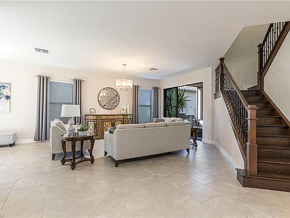 Experience luxury living in the desirable resort-style community of Stonecreek! Welcome to this beautifully designed 6-bedroom, 5-full bath home boasting over 4,100 sq. ft. of thoughtfully crafted living space. This well-appointed "Shiraz" floor plan offers spacious & open living areas, perfect for both relaxation & entertaining. All windows are impact resistant offering noise reduction, security & safety. Enter though the front double doors into the elegant formal living room, complete with sliding doors that open to a covered screened lanai. Adjacent is a formal dining room, and down the hall is a guest bedroom & a full bath. The gourmet kitchen is a chef’s dream, featuring abundant, soft close cabinets, stunning quartz countertops, double oven, microwave & natural gas cook top. Upstairs, a spacious loft serves as the perfect retreat for movie nights or additional lounge space. The primary suite is a true sanctuary with a private west-facing balcony. Relax at the end of the day & enjoy fantastic views of southwest Florida's gorgeous sunsets! The en-suite bathroom includes his-and-hers sinks & commodes, a spacious tub, & dual walk-in closets.Also on the second level are 4 additional bedrooms, 3 bathrooms, and a convenient laundry room. This home provides plenty of space for everyone in the family! The Stonecreek community offers a family-centered lifestyle with an array of exceptional amenities, including a clubhouse with a variety of activities coordinated by the on-site lifestyle director, resort-style pool & lap pool, fitness center, playground, tennis, basketball, volleyball, and dedicated pickleball courts! Located in the A rated Collier County school district and districted for the newly opened Aubrey Rogers High School. Stonecreek is just minutes from I-75, world-class beaches, premier shopping & restaurants, and the RSW airport. This home offers the very best of North Naples living!