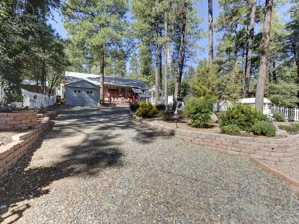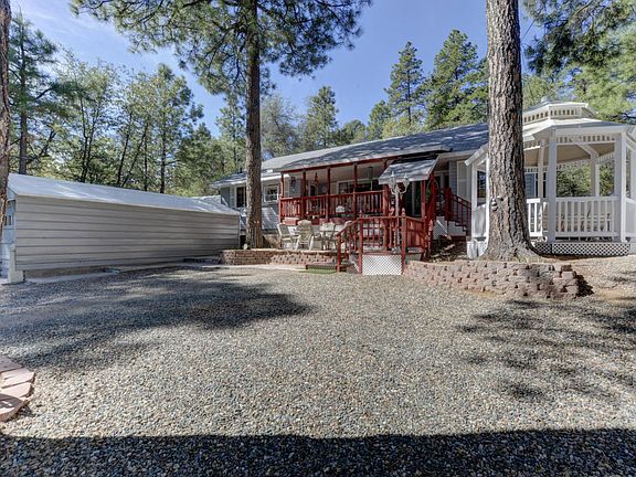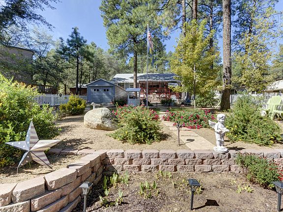 Own one of only~240 sf homes in a National Forest inholding that used to be a mining claim. Ponderosa Park, established in 1884, is surrounded by tall pines and winding dirt forest service roads. This amazing 2,700 sf home features 3 bedrooms (plus office), 3 baths, on an 8,712 sf lot which directly borders the National Forest! Ponderosa views from your covered front deck overlooking the beautifully landscaped front yard with roses and a charming gazebo. Living room includes a cozy fireplace and built in entertainment center plus bookshelves. Kitchen features neutral flooring, solid surface counters, custom backsplash. The dining room has lots of built in cabinets for storage, as does the large laundry room. Includes many of the furnishings! Master suite includes beautiful fireplace....