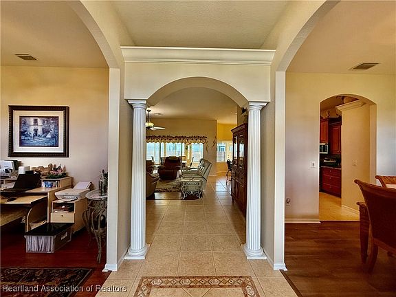 Located in Deer Run Estates on desirable Myrtle Beach Dr in the heart of Sun n Lake of Sebring, this well-maintained home offers over 1,900 living square feet and approximately 2,900 total square feet. Attractive curb appeal with side entry garage, concrete curbing, and beautifully landscaped front yard. The home features 3 spacious bedrooms, 2 full bathrooms, and a dedicated office/den that could serve as a 4th bedroom. The split floor pplanlab provides an open and inviting layout ideal for both entertaining and everyday living. The primary suite offers a luxurious private bath and generous closet space. Enjoy the enclosed glass lanai, perfect for year-round Florida living. Sun N Lake of Sebring is a premier golf course community featuring two championship golf courses, a community pool, pickleball courts and tennis courts, fitness center, and a restaurant. Conveniently located near shopping, dining, and medical facilities. Come experience the best in Florida living in this vibrant and active neighborhood. *PROFESSIONAL PHOTOS COMING SOON*