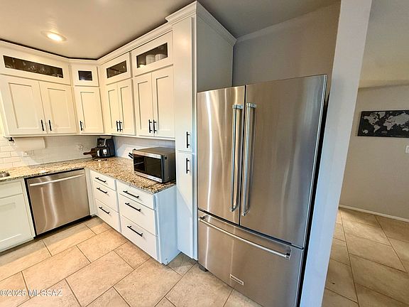 Beautiful 2 bedroom/2 bath plus den/office could be your Foothills home! Located in desirable La Casita Townhomes. An open floor plan features updated kitchen & bathrooms with beautiful cabinetry, granite countertops, stainless steel appliances & more! A cozy fireplace adds charm to the great room while the huge master suite, spacious second bedroom, large den/office offer comfort & functionality. Home boasts 20'' tile throughout new interior paint, newer dual pane windows with new shades. Enjoy year-round outdoor living with three covered patio areas. The oversize private backyard area has wind sails to provide a large, shaded area and a maintenance free green space. Fantastic restaurants and shopping are only minutes away on Sunrise Drive. Parking for two cars is only steps from your door (one covered and one uncovered). HOA covers 2 pools, a spa, Rural Metro service, trash collection, exterior painting, landscape, and road maintenance.