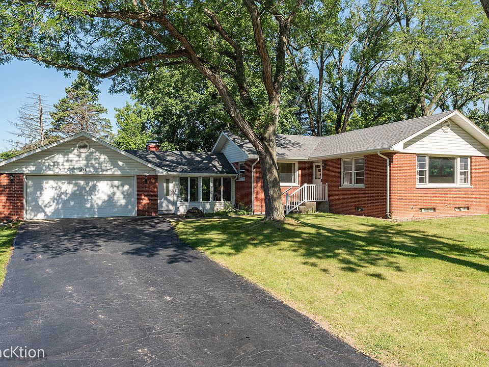 Solid brick home nestled in a park-like setting on a generous 100' x 270' wooded lot. Features include an attached oversized two-car garage with pull-down attic stairs, a spacious family room with a wood-burning fireplace, and a full partially finished basement offering an additional bedroom and full bath. Updates include a newer central air system and a roof replaced in 2024. Inside, you'll find hardwood flooring, an eat-in kitchen, and plenty of space to make it your own. Freshly coated driveway. Enjoy privacy with easy access to expressways and award-winning schools. Home is being sold as-is.