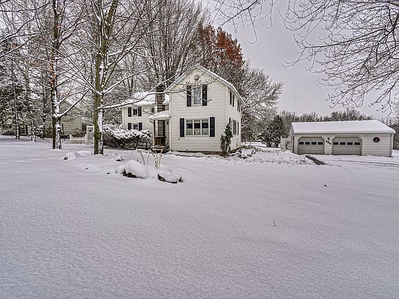 WOW! Gorgeous 3 bedroom 2 full bath colonial situated on 5 acres! 4 car garage! Huge eat in kitchen with cabinets galore, granite counters,island, and all appliances included! First floor laundry! BRAND new bathroom on first floor! Electric fireplace! Large living room! 3 Bedrooms upstairs with full bath! Literally do nothing but move right in! Open house Saturday 11-12:30pm!
