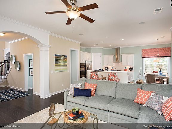 The Duvall II plan with five bedrooms, four baths, and a guest bedroom on the main floor is a must see! The Duvall II offers both a formal living room and formal dining room with coffered ceiling as well as a mudroom with an organizational room. LVP floors line the main level and upstairs hallway. The entry is amazing with a two-story foyer and high ceilings! The kitchen features a large island, quartz countertops, upgraded soft close cabinets, and tiled back splash. The chef in the family will appreciate the gourmet appliances including a gas cooktop and the built-in wall oven and microwave oven combo and a stainless-steel wall mounted hood that is vented to the outside. Relax on the covered porch that overlooks the back yard off of the great room. The great room is open to the kitchen and incudes a gas log fireplace as a focal point. Upstairs you will find the primary suite, two secondary bathrooms and three additional bedrooms with a Jack and Jill bath in between two of the bedrooms. The primary suite is absolutely gorgeous with a sitting area, boxed ceiling, large primary bath with a separate tiled tub and shower and a huge walk-in closet. A large laundry room and a spacious bonus room complete this home. **Interior photos are not of actual home, colors and options will vary** Under construction Disclaimer: CMLS has not reviewed and, therefore, does not endorse vendors who may appear in listings.