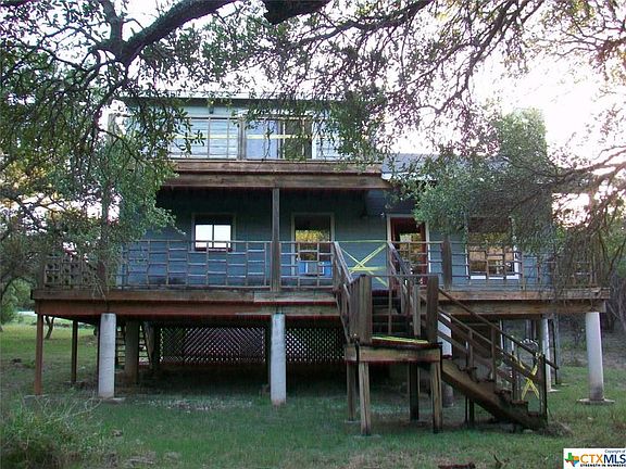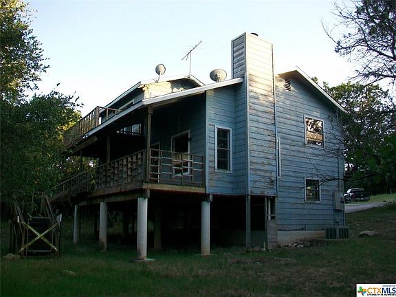 Canyon Lake Fixer Upper. Cash or Conventional purchasers. House needs attention to past deferred maintenance items & remodel. Larger items include: Paint in & out, hvac, wood rot, appliances, several broken windows. Wooden deck, balcony & stairs need repairs. Bottom level floors are not insulated. Will not qualify for first time home buyer financing. Multi-level, elevated, 3br/2ba residence that has the kitchen, dining, living & deck on the main level, mid-level has 2 bedrooms & a bath & upper level has a bedroom, bath & balcony. Ground level has attached storage. Large detached storage also present. Land includes 3 additional lots and totals approx. .954 acre, sits in a cul-de-sac and backs up to a greenbelt. Nice & quiet location. Surround yourself in nature. Close to Rebecca Creek boat launch and up the Guadalupe River from Canyon Lake. Neighborhood Hoa offers low cost for access to parks, pool, pond, basketball & tennis courts & civic center rental.