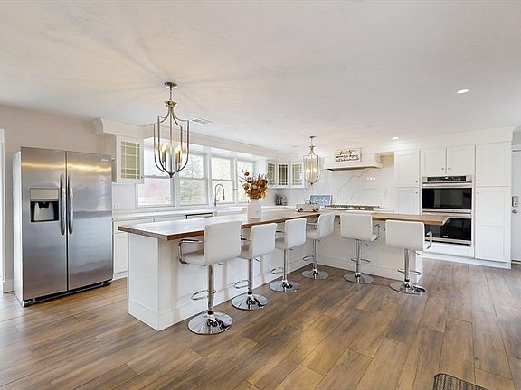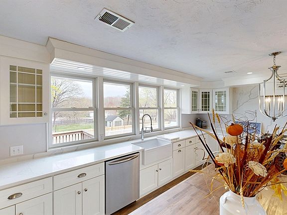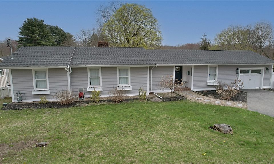 Searching for a spacious, move-in ready ranch? Your dream home awaits! Designed w/entertaining in mind, this stunning property features a chef’s kitchen complete w/white farmhouse sink, quartz countertops & backsplash, 8-burner gas cooktop, double wall ovens & a 17ft L-shaped island w/ample seating! Cozy dining area flows seamlessly into a fireplace-warmed LR w/gorgeous laminate flooring throughout. Retreat to the luxurious main bed—your personal oasis—featuring a Jack-and-Jill bath w/rainfall showerhead & walk-in closet. With 4 total beds—2 on the main floor & 2 in the finished lower level—this home offers privacy for everyone. Extra-wide staircase leads to a lower level boasting a generous FR, 2 beds & full bath w/relaxing jetted tub. Step outside & enjoy summer in the expansive, fenced-in yard complete w/inground pool, raised deck, & concrete patio—perfect for entertaining or simply unwinding. All this, just mins from Brockton Country Club, Route 28, shopping, dining & more!