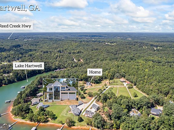 This stunning new construction home is move-in ready and waiting for you in a Lake Community. Located across from Lake Hartwell, it features an open-concept design with luxury engineered hardwood floors and tons of natural light streaming through large windows. The gourmet kitchen is a showstopper with white cabinets, granite countertops, a black island, stainless steel appliances, and stylish subway tile backsplash with industrial pendant lighting. The primary suite feels like a personal spa retreat with its freestanding tub, beautiful marble tile, and custom walk-in closet with built-ins. You'll love the modern touches like striking black stair railings and ceiling fans throughout, plus there's a 2-car garage and mature trees in the back that give you plenty of privacy. The upstairs loft area and bedrooms offer lake views and space for an office or game room, while the finished basement provides additional living space with its own entrance, perfect for a studio or in-law suite with kitchenette. The home has three bedrooms with a loft, and the basement could be used as a fourth bedroom. With premium finishes and thoughtful design details everywhere you look, this home perfectly combines modern elegance with the peaceful serenity of nature.