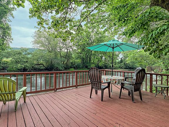 A charming & delightful escape on the sparkling waters of the Hiawassee River in the North Carolina Mountains. Fully Furnished & Move in Ready! Home was built in 1960 and completely renovated in 2010. 2 Bedrooms, 2 Full Baths set up as a main home and cottage with efficiency kitchen. Property also offers a garden shed & gazebo in a park like setting. A huge deck overlooks the water. Room to expand possible bonus room above garage. The home was formerly a 5 star AirBnB & would make a fantastic rental, full time home or get-a-way.