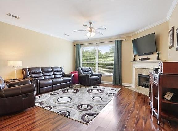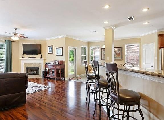 This home has it all! Enjoy beautiful pond views and greenspace from the extended patio. Grand 2-story foyer, 4 bedrooms plus study and dining room! Master on first floor with huge closet, 3 bedrooms up plus built-in kids desk. Upgrades include quartz counters, SS appliances, 42o cabinets, crown moulding, 18o tile, wood laminate and more. Spacious kitchen has wrap-around bar and breakfast area. New A/C unit with air purifier in 2015. High and dry! No flooding! Immaculate, must see!