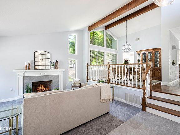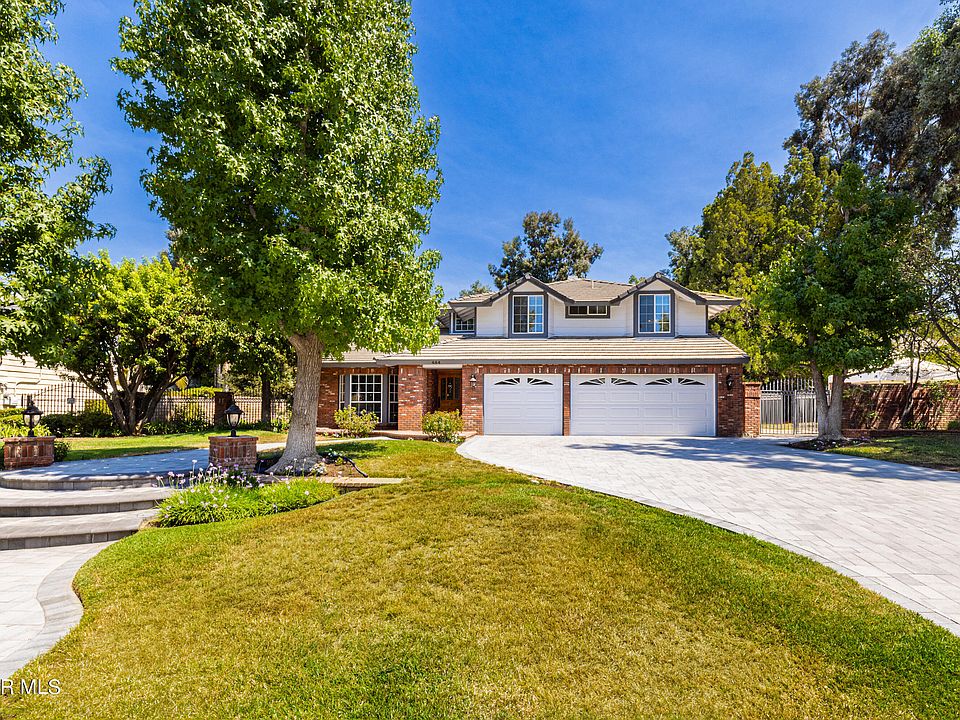 Unique opportunity own a custom home in the desirable Country Lane community! Situated on a private 1/2 acre lot, this estate is complete with a recently renovated main home offering 3 bedrooms and 3 baths plus a generously sized guest house with vaulted ceilings, kitchenette and full bathroom. Stunning curb appeal welcomes you with fresh exterior paint, new paver driveway, mature trees and meticulous landscaping. Stepping inside, the bright and open floor plan greets you with vaulted ceilings, a cozy fireplace and charming bay window in the living room. The recently updated kitchen is finished with white cabinetry, quartz countertops and new stainless steel appliances. The kitchen garden window overlooks the private rear yard with views of the tranquil waterfall. Formal dining with large picture windows and wood beam ceiling and cozy family room with fireplace are both adjacent to the kitchen. Step down into your own 'lanai' room, a relaxing space with indoor hot tub, bar area and French doors to the backyard. Upstairs you'll find two spacious secondary bedrooms adjoined by a jack-and-jill bathroom. The primary suite offers a generous sitting area perfect for a gym, office or den with wet bar, fireplace and French doors leading to your balcony overlooking the rear yard. The primary en suite bath has been beautifully remodeled with raised dual vanity sinks, large soaking tub and separate shower. Privacy abounds in your rear yard retreat, surrounded by mature trees & landscaping. The sparkling pool and spa are accented with an impressive stone waterfall. Other features include large grassy area, built-in BBQ, fire pit, and spacious side yards with plenty of room for gardens, sport court and RV storage. The detached guest house spans nearly 800 sq feet and enjoys vaulted wood beam ceilings, full bathroom and kitchen with bar top seating. Other amenities include central vacuum system, fresh interior paint, new carpet, new tile floors, new doors & hardware and recessed lighting. All of this located in a peaceful and beautiful neighborhood with pride of ownership throughout, bridal paths, and nearby Coyote Park. Welcome home!