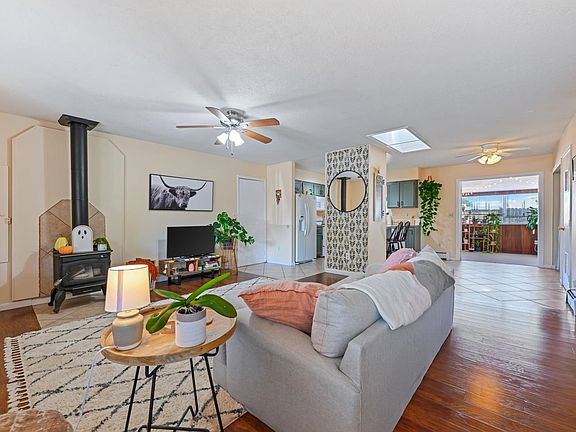 This adorable home in the Southeast are of Grand Junction is ready for you to own! As you enter the spacious main living area you'll find beautiful wood laminate flooring throughout, tons of natural light and a wood burning stove that gives this space a cozy feel. The living area opens nicely to the kitchen featuring ample counter space with an island/ breakfast bar, updated cabinets, and open dining area. Just off of the dining space is a fantastic sunroom, which is bright, has great views of the Grand Mesa and is the perfect area for a wide variety of uses all year long. Off the sunroom you'll find an additional, un-heated studio/storage room with access to the garage and backyard. The three bedrooms are all well sized with large closets and the primary bedroom has a private door to the shared full bathroom. The large backyard features an open patio, fire pit, garden box, and mature trees. This home also offers a deep 1 car garage and covered front porch. Central location provides convenient access to shopping, dining, schools, entertainment and recreation. Come see it today!