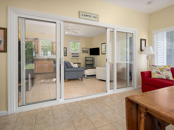 Luxury all-inclusive resort amenities await you at this stunning 3-season gated cottage community only one mile to sandy Wells Beach. This highly sought after 'Friendship' model is situated on a private corner lot ideally located close to the heated adult pool, family pool, pavilion and clubhouse barn. From the wooded front yard, with space for a seating area, enter into the bright sunroom and through glass doors into the inviting living room and kitchen with tile floors, vaulted ceilings and large windows that fill the room with natural light. The home is complete with a full bath, laundry, and two spacious bedrooms on either end for maximum privacy, a unique feature to this cottage's layout. Spend the day at the beach or the heated pools, hot tub, sauna, fitness center, putting green, tennis, pickle-ball, shuffleboard courts, baseball field, horseshoe, corn hole and more. Check out the nightly entertainment offerings or any of the many fine coastal restaurants in the area. From May thru October, there is no place like 'The Cottages at Summer Village'.