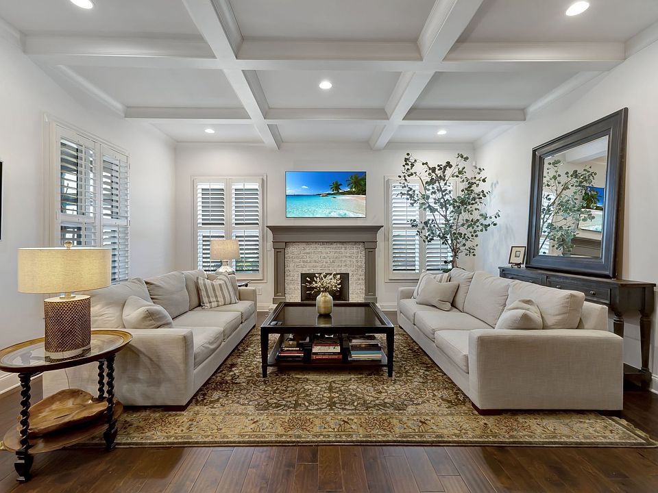 Large islandNew roofPremium lotStone fire pitCoffered ceilingCustom plantation shuttersCrown molding