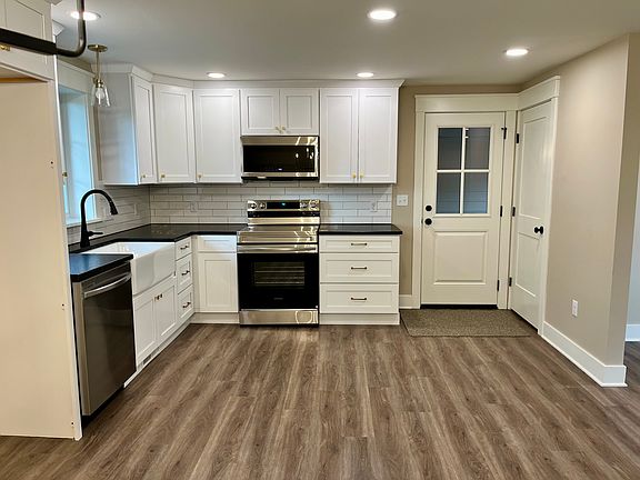 Recently renovated 2-bedroom home with large closets, new kitchen and bathroom, finished bonus room in basement, plenty of storage, nice yard, breezeway, one car garage, and shed. New, efficient central heating and A/C. Water, sewer, and most appliances included. Pets considered.