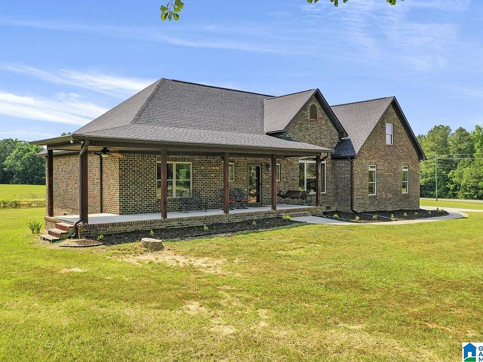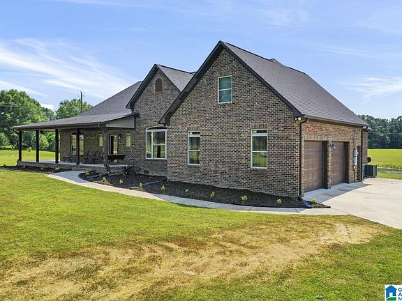 This all brick, one level home situated on over 2.6+/- acres has 3 bedrooms and 2 bathrooms. Walking on the large front porch and opening the beautiful front door you are greeted with hardwood floors, crown molding and a large separate dining/living room. The kitchen features an open concept to the large great room with a gas fireplace. The bedrooms are split design and have a jack and jill bathroom. The kitchen has beautiful custom cabinets, granite countertops and a large breakfast bar. The master en suite bathroom is large with a spacious soaking tub and separate shower. There is a storm shelter in the large garage and a huge space upstairs ready for you to finish. The home also a large brand new detached garage perfect for your workshop. The backyard is like a dream with lots of space a huge pond that is ready for you to go fishing in. Call today.