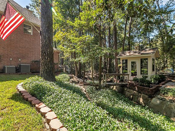 Beautiful Brick 2 Story on a Private Corner & Wooded Lot. Impressive, upgraded Landscaping. Tons of updates throughout. Marble and Wood Flooring. Remodeled Granite Island Kitchen with Glass Tile Backsplash. Recent appliances include double ovens. Remodeled Primary Bath with Clawfoot Soaker Tub and separate Shower, double sink vanity, updated fixtures and his & hers closets. Remodeled Powder Room. The Family Room is complete with Gas or Wood Burning Fireplace and overlooking the park like wooded back yard. Upgraded wood tread stairway. Spacious Game room with built-ins. Roof and Water Heater 6 Years old. Elegant dining room with extra crown molding. Lots of additional storage under the stairway, as well as , above the garage. Separate Guard House that could be used as a playhouse for the kids or storage. This home was recently yard of the month with incredible attention to detail. Move in Ready. Comes with a 1-year home warranty & NO FLOODING!