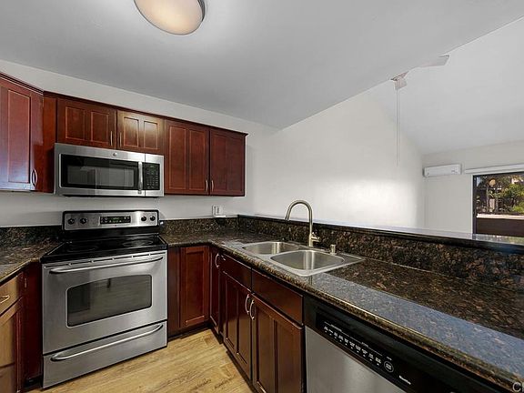 TOP-FLOOR WITH VAULTED CEILINGS. BALCONY. ELEVATOR. IN-UNIT LAUNDRY. NEW FLOORING & CARPET. NEW PAINT. NEW MINI-SPLIT AC. TWO ASSIGNED PARKING. GATED, POOL, & SPA. Welcome to 4540 60th Street #303, a refreshed top-floor 2-bed, 2-bath residence offering 845 sq ft of bright, comfortable living. The open living and dining area features soaring vaulted ceilings and flows to a private balcony for easy indoor–outdoor living with full, east mountain views. Fresh interior paint pairs with new flooring and carpet throughout, while central AC keeps things cool year-round. The split-bedroom layout includes an en-suite bedroom and great storage. Elevator access adds everyday convenience, and TWO assigned parking spaces complete the package. Community amenities include a pool and spa; the HOA covers water, trash, sewer, common-area utilities, exterior maintenance, management, and building upkeep. In San Diego’s College Area/El Cerrito, close to SDSU and the restaurants and coffee spots along El Cajon Blvd—with quick I-8 access at College Ave for easy commuting.