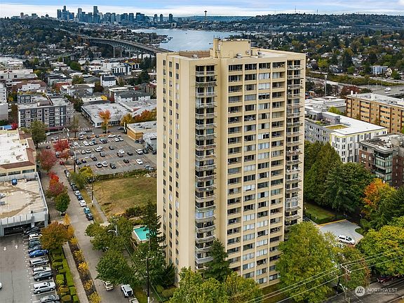 Move on up to your deluxe view condo in the sky set within the heart of all the University District offers. Coveted lifestyle amenities include a pool, sauna, rooftop deck, gymnasium, communal cabana, facilities mgmt svcs, 24-hr security, underground parking. South-facing end-unit floorplan w/3 bdrms that all offer breathtaking views of DT Seattle & are flooded w/natural light, 1.75 BA, 1,450SF. Main bdrm has lrg his ‘n her closets & its own private bath. Generous living rm, w/adjoining dining rm, has frplc & a wall of windows & flows to the private covered balcony w/views of the pool, Lake Union, DT Seattle, & beyond. Only moments to shops, eateries, & transport providing all the elements for relaxing, comfortable, & easy-care living.