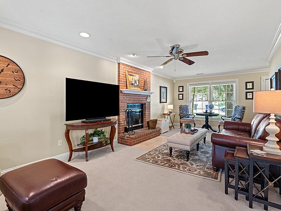 This handsome and meticulously maintained and recently updated 3BR/2.5BA home is nestled on a quiet cul-de-sac and offers plenty of curb appeal with its inviting covered front porch. Step inside to an open-concept layout featuring a cozy living area with a wood burning fireplace. The kitchen boasts granite tile countertops, solid wood cabinetry, a breakfast bar, pantry, and comes fully equipped with updated appliances. The adjacent dining area is perfect for hosting holiday gatherings or casual dinners. Unwind in the tiled sunroom, which overlooks the lush backyard w/raised garden beds, a 16'X16' octagonal composite deck, and a spacious patio. Upstairs, you'll find 3 generously sized BR's and 2BA's, including the bright & airy primary suite. Recent upgrades include both HVAC systems (2019), ensuring comfort and efficiency, carpet in 2023, composite decking. A full list of the updated features is available upon request!