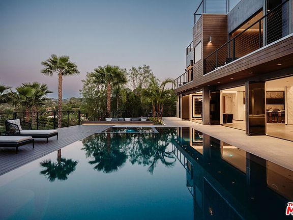 Welcome to "The Encino Observatory" an architectural masterpiece with jetliner unobstructed valley views and expansive rooftop deck conveniently located on one of the best streets and vantage points in all of the prestigious Encino Hills. The meticulously designed interior features top-of-the-line finishes, including a Miele kitchen with an elegant Onyx bar, a 100-bottle wine cellar, soaring ceilings adorned with a striking 20ft chandelier, Crestron smart home automation, and bespoke LED lighting throughout. Step through floor-to-ceiling panoramic glass doors to discover an entertainer's dream backyard, complete with an infinity pool, spa, outdoor fire-pit, and utmost privacy. Indulge in the opulent and Bali inspired primary suite boasting a designer-done bathroom, wet bar, and expansive walk-in closet. Ascend to the expansive rooftop deck and immerse yourself in arguably the finest views Encino Hills has to offer. Equipped with Crestron home automation and top-tier security systems, this residence offers both convenience and peace of mind. With close proximity to the vibrant amenities of Ventura Blvd, this estate presents a golden opportunity to experience the epitome of luxury living in absolute tranquility. Truly an architectural masterpiece awaiting the most discerning of buyers in all of Encino.