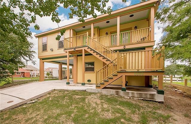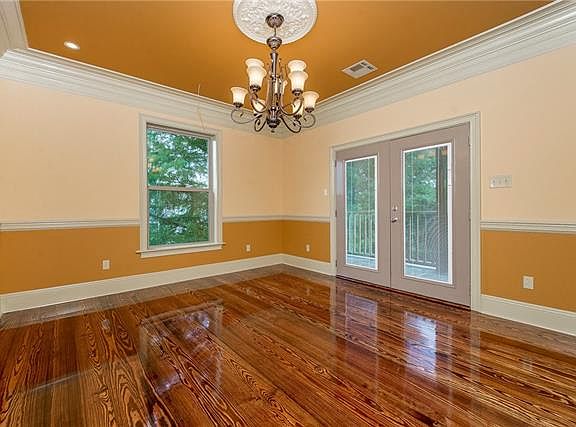 Beautiful brand new construction waterfront retreat; elegant dining room w/pocket doors; triple crown moulding in living areas; expansive living room w/built-ins, extensive woodwork; dream kitchen w/breakfast bar; glistening pine wood floors & tile throughout! Spacious master; balcony; boat dock; covered area downstairs great for entertaining; huge garage/storage area; water navigable to the lake! 90% complete - still finishing master bath, fireplace, loft; range, microwave & dishwasher to be included.