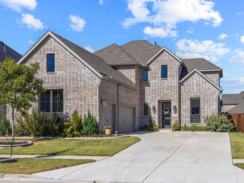 Just two years old, this bright and modern two story home offers a crisp neutral palette and abundant natural light throughout. Located in Prosper’s premier master-planned community of Windsong Ranch, home to the iconic 5-acre Lagoon, this residence combines thoughtful design with everyday functionality. Enjoy a three-car side-by-side garage with an extended driveway, providing generous parking for family and guests. Inside, you’ll find blonde white oak wide plank engineered hardwood floors, upgraded KitchenAid stainless appliances including double ovens and a 6 burner gas cooktop, plus a stunning quartzite island as the centerpiece of the chef’s kitchen. The thoughtful floor plan includes a sunny home office, media room conveniently located downstairs, spacious owner’s suite and a guest suite with private bath on the main level, along with a half bath for guests. Upstairs offers two additional bedrooms, two full baths, and a large gameroom—perfect for a home gym or playroom. Enjoy comfort and efficiency with a whole home water softener, filtration, and reverse osmosis system, and permanent holiday lighting for year-round curb appeal. The large, flat backyard provides endless possibilities for outdoor living or a future pool. Lightly lived-in with no pets, this pristine home feels brand new and is zoned to highly acclaimed A-rated Prosper ISD schools. Ideally located just minutes from the PGA Headquarters, Fields West, and the upcoming Universal Kids Theme Park.