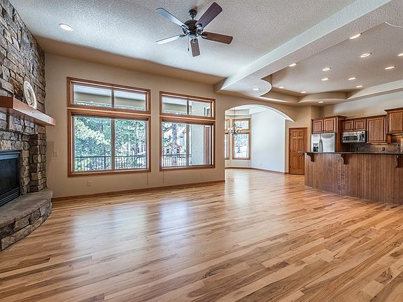 Stunning 4,359 finished sq ft ranch home on 1 wooded acre in Perry Park! Home showcases an open floor plan, enormous great room with access to the partially covered deck and views of the towering pines. The gourmet kitchen features GE Profile stainless steel appliances, cherry cabinets, slab granite counter tops and soft close drawers. The main level boasts a guest suite along with the master suite with his and hers walk in closets, a luxurious 5 piece bath and access to the private deck. The finished walkout basement features a family room, 2 full bedrooms, a wet bar and ample storage space along with the potential for a large passive wine cellar. Each bedroom is a suite with a private bathroom. Home built by a highly respected local builder.