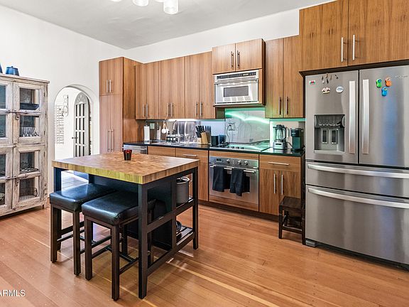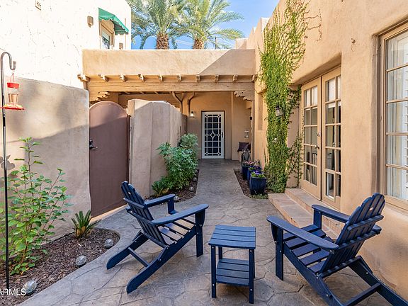 Experience refined Arcadia living in this timeless townhome, rich with charm from its origins as a historic date farm. Showcasing rare 100-year-old hardwood floors, an octagonal vaulted wood ceiling, and beautifully tiled fireplaces, the home blends character with sophistication. The kitchen features a warm, elevated design with a center island and ample storage, while the office offers custom built-ins. Step outside to your private patio for an intimate escape. All of this just moments from the Arizona Country Club, Camelback mountain and walking distance to LGO. Your serene retreat in the heart of it all.