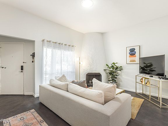 Desert living in a palm grove oasis. Once a working date farm, Palma Viva is now a hidden enclave with history and charm. Inside, classic details like a beehive fireplace and concrete floors mix with modern updates, including updated kitchen and bathroom, tall ceilings, tiled shower, keyless entry, and a private patio with sun shade. Relax at the community pool beneath the palms, or step out to some of Phoenix's best dining, shopping, and nightlife just minutes away. The location bridges Arcadia and Arcadia Lite, making it easy to enjoy the canal for biking and walking, hikes up Camelback Mountain, or evenings at top local restaurants.