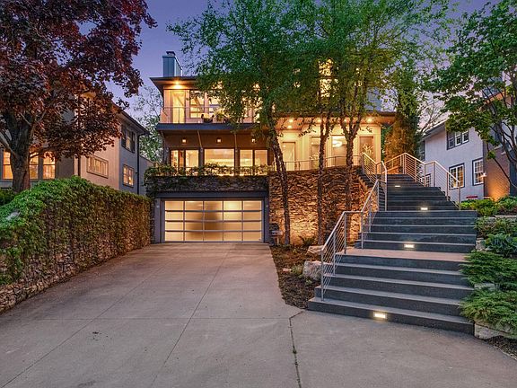 This incredible four bedroom/four bath contemporary home overlooking Beard's Plaisance & Lake Harriet is a perfect condo alternative, with an ELEVATOR providing access to every floor. Come live in the heart of Linden Hills, just a short walk to dozens of shops and restaurants. Huge floor-to-ceiling windows throughout create a luxurious treehouse feeling, and sunrises over the lake from the primary suite and main floor living areas are incredible all year round. This award-winning home has been exquisitely remodeled from top to bottom, inside and out, with every detail considered. Chef's kitchen includes huge quartz countertops, top of the line appliances, custom hood vent, coffee bar, informal eating area, and more. Main floor boasts open concept living/kitchen area with fireplace, separate sunroom with fireplace, private office, powder room, and formal dining area, currently used as additional sitting room overlooking the park and Lake Harriet. Motorized window coverings featured throughout the entire home. The smart lighting system highlights the custom lighting and accentuates the sleek modern design. FOUR inviting outdoor spaces include a large private deck and patio in back off the kitchen and sunroom with outdoor kitchen, perfect for family get-togethers or a peaceful morning coffee in a tranquil setting. Additional outdoor spaces are in the front off the main living room, a private balcony off the primary suite, and a huge bonus deck off an upper-level guest suite. There are two laundry room areas-one by the upper-floor bedrooms and one in the lower level by the fourth bedroom and 3/4 bath, creating the perfect space for an au pair. The attached 3-car garage is heated with custom cabinetry, plenty of storage, high-end refrigerator and sink, epoxy floors, drainage, and water hookup. The home features an irrigation system, and over $40,000 of professional landscaping was recently installed. This incredible property is perfect for entertaining, whether you have a growing family, are looking to age in place, or looking for luxurious main level living options, this property caters to all of your needs in a beautiful setting overlooking open space and Lake Harriet. Must see in person to truly appreciate this home, it is a piece of art in and of itself. See supplements for floor plans and virtual tour.
