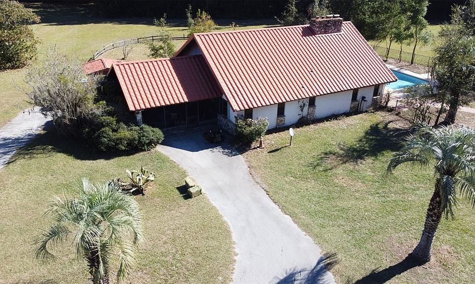 Once in a lifetime opportunity! This beautiful 16.08 acre working farm is ready for the next owner!! This ready-to-operate farm comes complete with many equine facilities. Entrance: Let’s begin with the entrance to the farm. It has two entrances to accommodate vehicles of all sizes. The private entrance is used for regular vehicles. It features an iron gate with stone pillars and mature beautiful palm trees to greet you as you enter the property. You then drive down the winding driveway lined with double-fenced paddocks and large oak trees for shade to access the main home and guest house. A second larger entrance can be used by tractors, trailers, RV and other large vehicles. Main house: The home is centrally-located in the middle of the 16 acres. The owners’ residence is a beautiful old Spanish-style 2-bedroom 2-bathroom house. The roof was replaced with metal roof in 2006. Upon entering the home, you have a spacious screened-in front porch for those nice front-porch evenings to relax and enjoy the view. The home also boasts a large kitchen featuring an in-wall grill, a large commercial grade gas stove with double ovens, pizza oven and several burners for cooking and entertaining. Kitchen dining area also has a wooden fireplace. The owners’ suite has a large walk-in closet and best part is a wooden fireplace also that can be used for those crisp nights. The owners’ suite bathroom comes with a comfortable jacuzzi tub-shower combo. The second bedroom has a wet bar with sink and small refrigerator. The guest bathroom has a large walk-in shower. The sunken living room has a breakfast nook off to the side facing the beautiful old oak trees and the farm. The side yard is fully fenced for the furry family members. The backyard comes with a large inground swimming pool with pool heater, completely fenced-in with a locking gate. The property also has 2 additional home sites available. The guest home is a 1-bedroom 1-bathroom. Guest house and other living site: The second home will need a full rehab with roof replacement and trusses, the third and vacant site is ready for new build or mobile home. Utilities: Total utilities available on the property include 2 wells and 6 septic tanks between the 3 home sites and 3 RV sites by the barn. Horse facilities: For the horses, there are 3 barns with a total of 17 stalls. 2 barns are 13-14 blocks tall (required for quarantine), and paddocks are spaced so that quarantine is possible for horses. The main barn features 8 regular-size stalls, an oversized 18x20 special-use stall and a large tack room/office. A wash-rack with hot water is available for the horses, as well as a washer and dryer hook-up to wash the blankets and more. A smaller barn features 6 regular-size stalls, and 2 stalls are available in one paddock. There is plenty of storage for feed and a pole barn for equipment storage. Additional equine training facilities include an Olympic-size dressage arena complete with mirrors, a 20m x 50m practice arena, and a large 40m x 60m jumper practice area, as well as a 60ft round pen, and 3 RV hook ups at the barns with water, sewer, and electricity. All paddocks and arenas have water features available for animal watering. The exterior perimeter of the farm has a double-fenced beautiful tree-lined canopy cool-down horse path that lines the perimeter of the farm. This property was previously used for training, dressage, boarding and more.