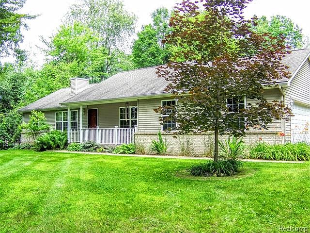 A world away yet close to the village. This lovely ranch home has so much to offer in your next home. Fenced back yard with gorgeous trees for privacy. Vaulted great room, hardwood floors, granite kitchen counters, split bedroom plan, covered front porch with brick accents, natural gas, large deck, 1st floor laundry, central vacuum and a finished basement. This 3 bedroom 3 bath home has been cared for, loved and maintained.