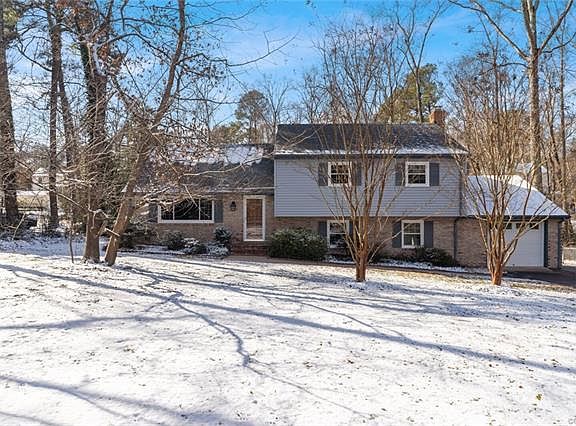 If comfort and spacious living at an affordable price are your priorities, this is the home for you. Upon entering, you will be greeted by a lovely traditional floor plan including entry foyer, large living room with picture window, separate dining room for creating your memorable traditions, and an eat-in kitchen with solid wood cabinetry. For additional entertaining or a separate sanctuary, travel downstairs to a place all its own and into the warmth of an over-sized family room with well-crafted brick fireplace. Half-bath/utility room and garage access are but a stone's throw away. The third floor hosts three bedrooms and two full baths, but it doesn't end there. Yet, another opportunity awaits for privacy on the fourth floor where additional finished space allows for office, playroom or bedroom use. This quality-built home stands ready to serve as your home for years to come in its well-kept and cared-for condition, and with some minimal personal touches, it can become your dream home! Located in Chesterfield County, it provides affordable taxes and is in close proximity to Chester and Colonial Heights commerce. Generator conveys with sale of the home!