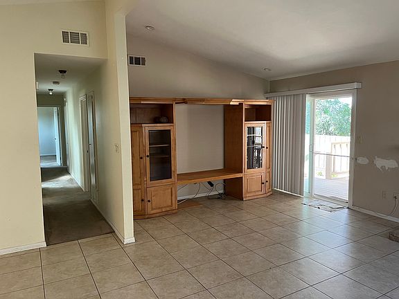 Citrus treesLarge two-car garageCovered deck in backyardQuiet streetVaulted ceilingAdditional driveway parking