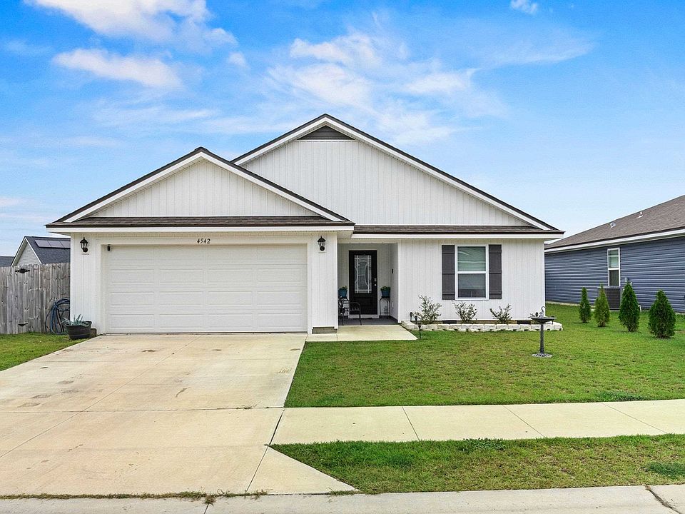Step into modern comfort with this nearly new 3-bedroom, 2-bathroom home built in 2023. Designed with today’s lifestyle in mind, this home features an open-concept floor plan, spacious living areas, and abundant natural light. The sleek kitchen offers contemporary cabinetry, stainless steel appliances, and a generous island perfect for gatherings. The primary suite includes a walk-in closet and a private bath with modern finishes, while two additional bedrooms provide flexibility for family, guests, or a home office. Enjoy peace of mind with newer construction, energy-efficient systems, and low-maintenance design. Outside, the backyard is ready for your personal touch—perfect for entertaining, gardening, or relaxing. Conveniently located near schools, shopping and highways, this move-in-ready home combines style, function, and comfort.