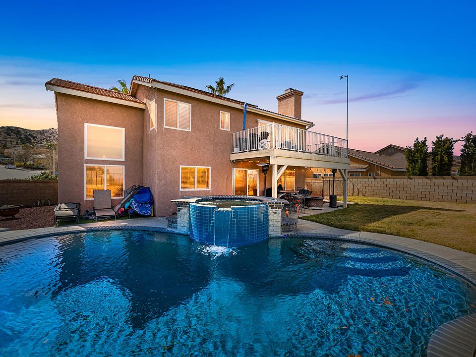 This stunning Rancho Vista pool home offers breathtaking views and high-end features throughout. From the moment you arrive, the impressive curb appeal, 3-car garage, and grand staircase entry set the tone for this exceptional property. Inside, the open floor plan is designed for both comfort and style, featuring a formal sitting area, a spacious dining room with abundant natural light, and upgraded flooring.