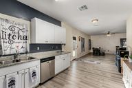 Extended patio and walkwaySecond-floor master suiteCorner lotBackyard with lush grassFormal dining areaMechanical sun shadesGenerous walk-in closet